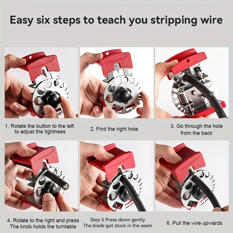 1. The Universal Wire Stripper can help strip wires quickly; just put the wire in the right hole, adjust the blade and you are ready to work, greatly reducing your stripping time and increasing efficiency.